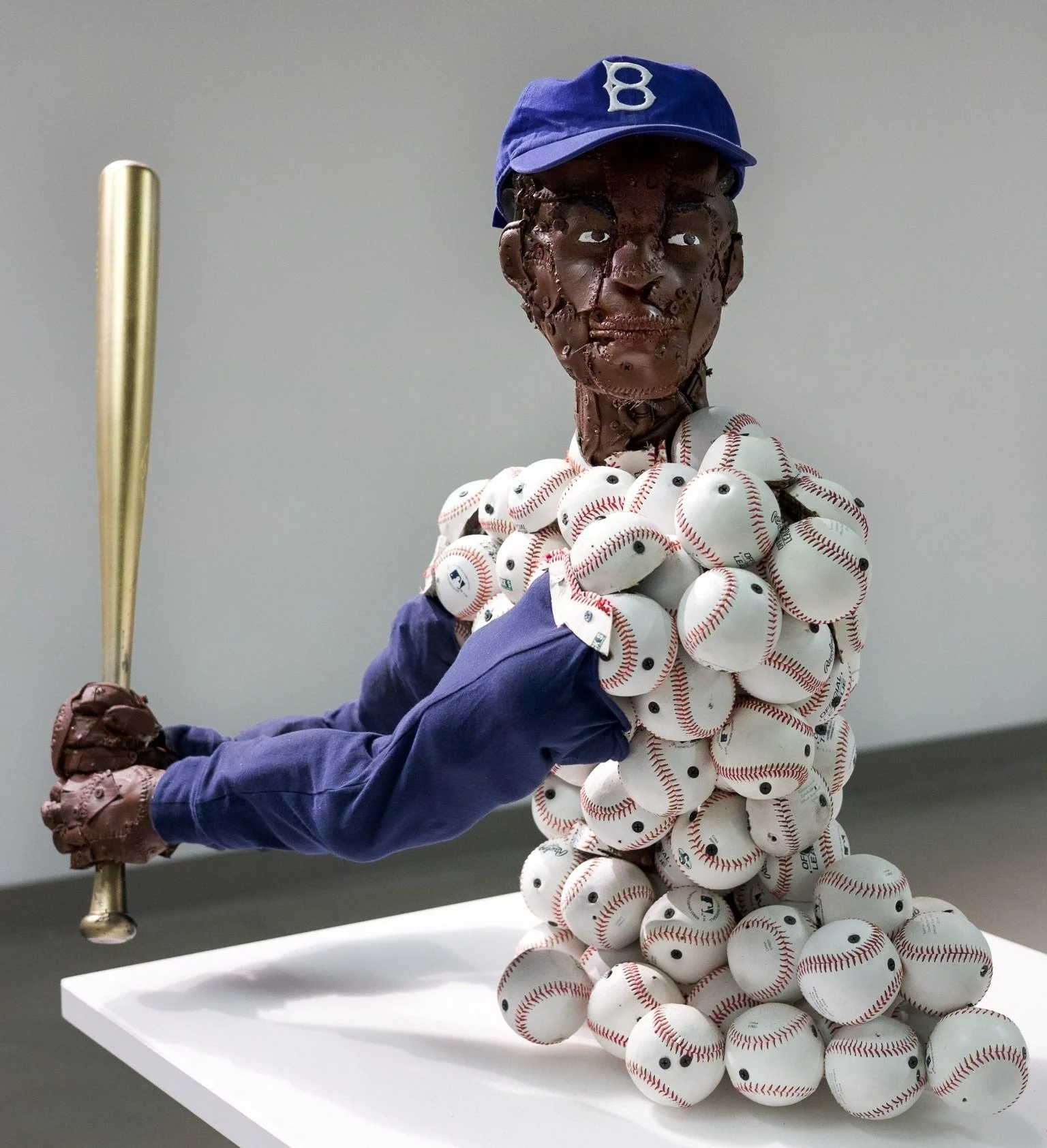 Maxwell Pearce’s work emphasizes the multi-dimensionality of being an athlete and a total person. His textured mixed media pieces are created out of sports equipment and shoelaces - which he believes to be the common thread between so many of us. His sculptures maintain historical and contemporary references through inspirations like important people, moments, ideas, family members, and also athletes. His perspective as a professional athlete and an artist gives him a very unique vantage point.